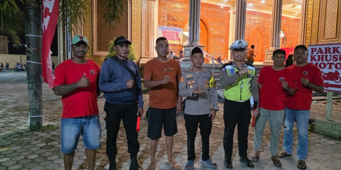 Kilaspapua, Sentani – Jajaran Polsek Sentani Kota bersama pemuda gereja di Sentani melakukan pengamanan shalat tarawih di Masjid Al Aqsha Sentani, Rabu