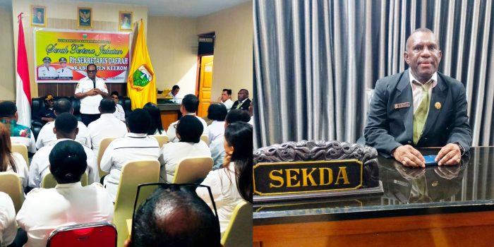 Kilaspapua, Keerom – Bupati Keerom, Piter Gusbager, SHut, MUP mengingatkan kepada Plt Sekda Keerom yang baru untuk beberapa hal penting yang harus
