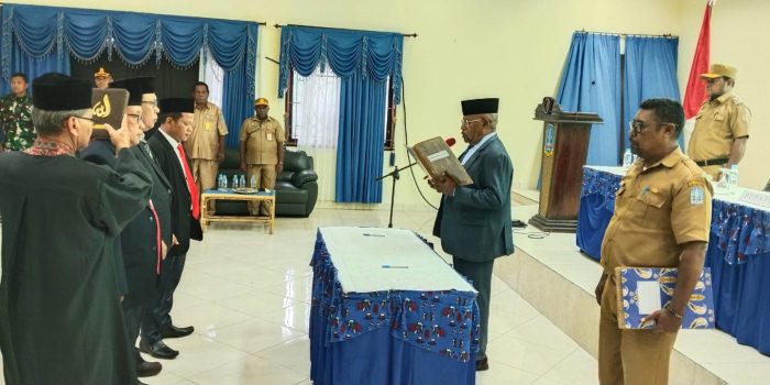 Kilaspapua, Sentani – Bupati Jayapura lantik Mulyono sebagai direktur utama Perusahaan daerah,(Perusda) Baniyau menggantikan Eymus Weya periode 2026-2030 diaula lantai II Kantor