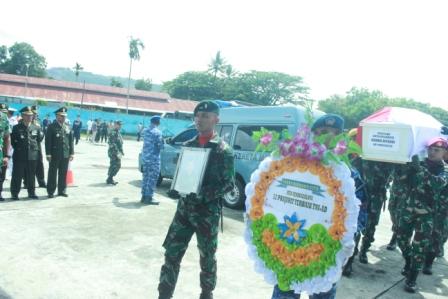 Pemberangkatan jenazah menuju kampung halaman setelah dilepas melalui acara Militer.