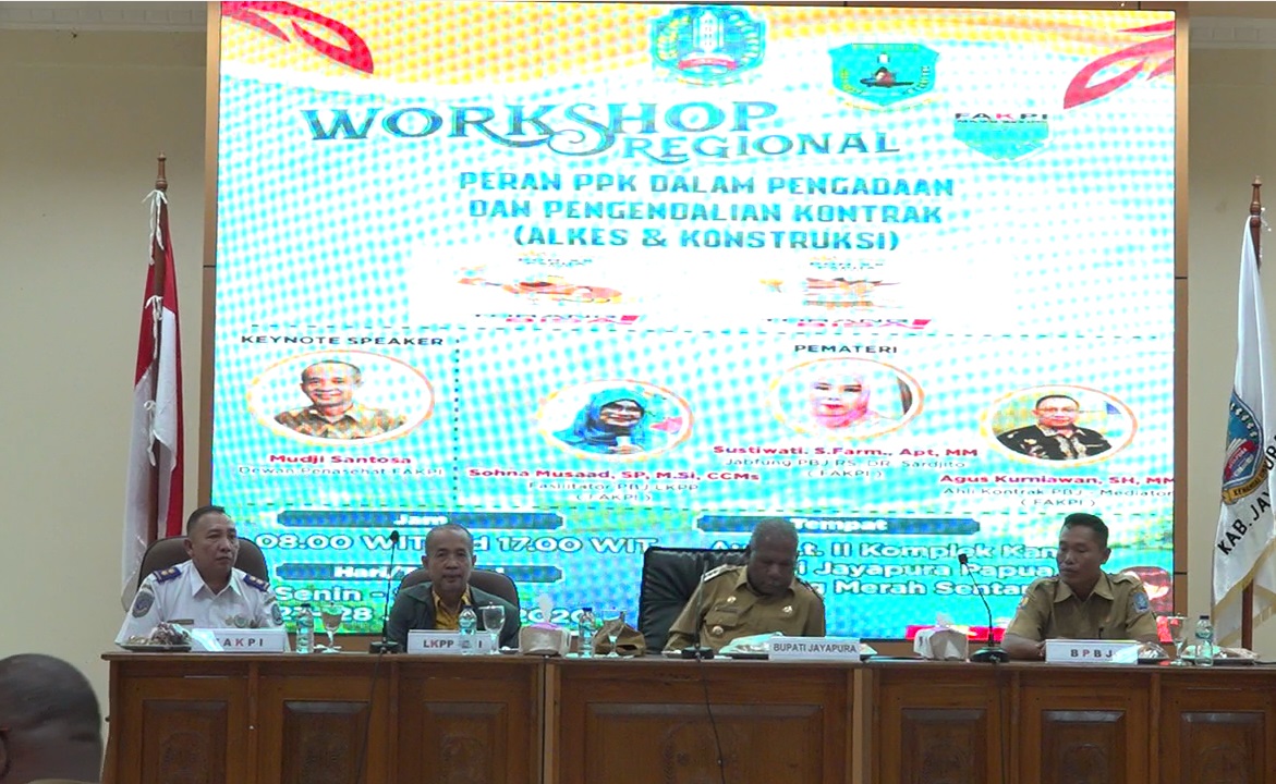 Kilaspapua, Sentani- Pemerintah Kabupaten Jayapura menggelar workshop regional peran PPK dalam pengadaan dan pengendalian kontrak (Alkes & Konstruksi) yang dilaksanakan diaula lantai dua Kantor Bupati Jayapura, senin (27/1/2020).