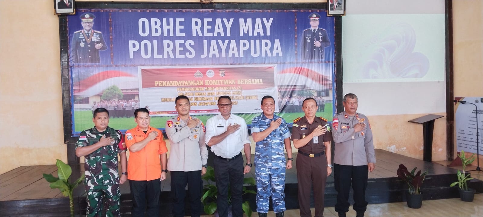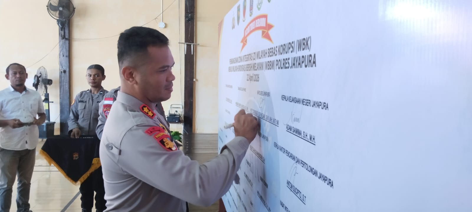 Kilaspapua, Sentani – Polres Jayapura berupaya untuk mempertahankan zona Integritas Wilayah Bebas dari Korupsi,(WBK) yang telah berhasil diraih tahun 2018 lalu. Hal itu diketahui dari kegiatan penandatangan komitmen bersama fakta Zona Integritas (ZI) menuju Wilayah Bebas dari Korupsi (WBK) dan Wilayah Birokrasi Bersih dan Melayani (WBBM), yang dilaksanakan di Aula Obhe Reay May Polres Jayapura, Rabu (22/04/2026).