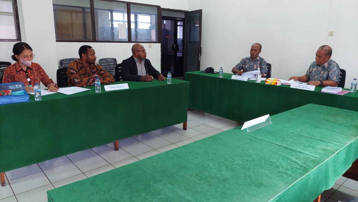 Foto. Suasana pertemuan Disperindagko UKM & Naker Papua dengan LBH Papua Justice & Peace, Yuliyanto S.H., M.H terkait kasus Penonaktifan sepihak 8 karyawan PT. Era Elohim Papua.(Foto. Ist)