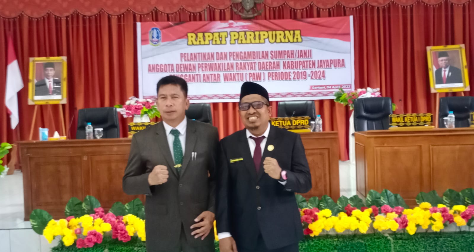Kilaspapua, Sentani- Muhammad Akbar resmi menjadi anggota Dewan Perwakilan Rakyat Daerah,(DPRD) Kabupaten Jayapura menggantikan Wagus Hidayat, SE setelah dilantik oleh Ketua DPRD Kabupaten Jayapura, Klemens Hamo pada rapat paripurna pelantikan dan pengambilan sumpah/ janji anggota Dewan Perwakilan Rakyat Daerah,(DPRD) Kabupaten Jayapura pengganti antar waktu,(PAW) periode 2019-2024 diaula DPRD Kabupaten Jayapura, Senin (4/4/2022). Pengangkatan Muhammad Akbar merujuk dari SK Gubernur Papua No. 155/223/Tahun 2022 tentang penghentian, pemberhentian dan pengangkatan pergantian antar waktu anggota DPRD Kabupaten Jayapura periode 2019-2024.