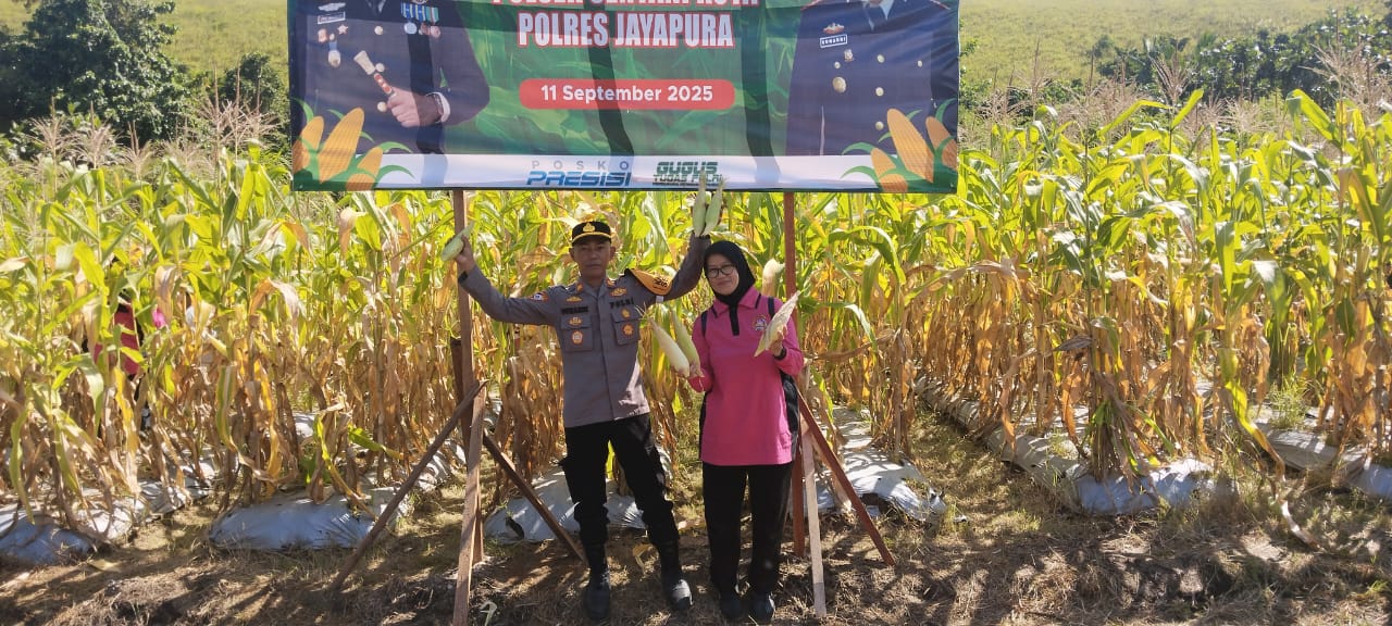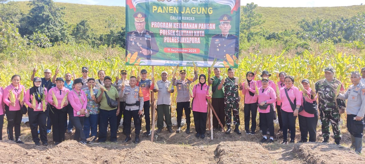 Kilaspapua, Sentani – Kapolsek Sentani Kota, AKP Sunardi, Sos bersama ibu Bhayangkari cabang Sentani Kota melakukan panen jagung bersama dilahan binaan Polsek Sentani Kota seluas 20 x 50 m yang berada di Yahim, distrik Sentani, Kamis (11/9/2025).