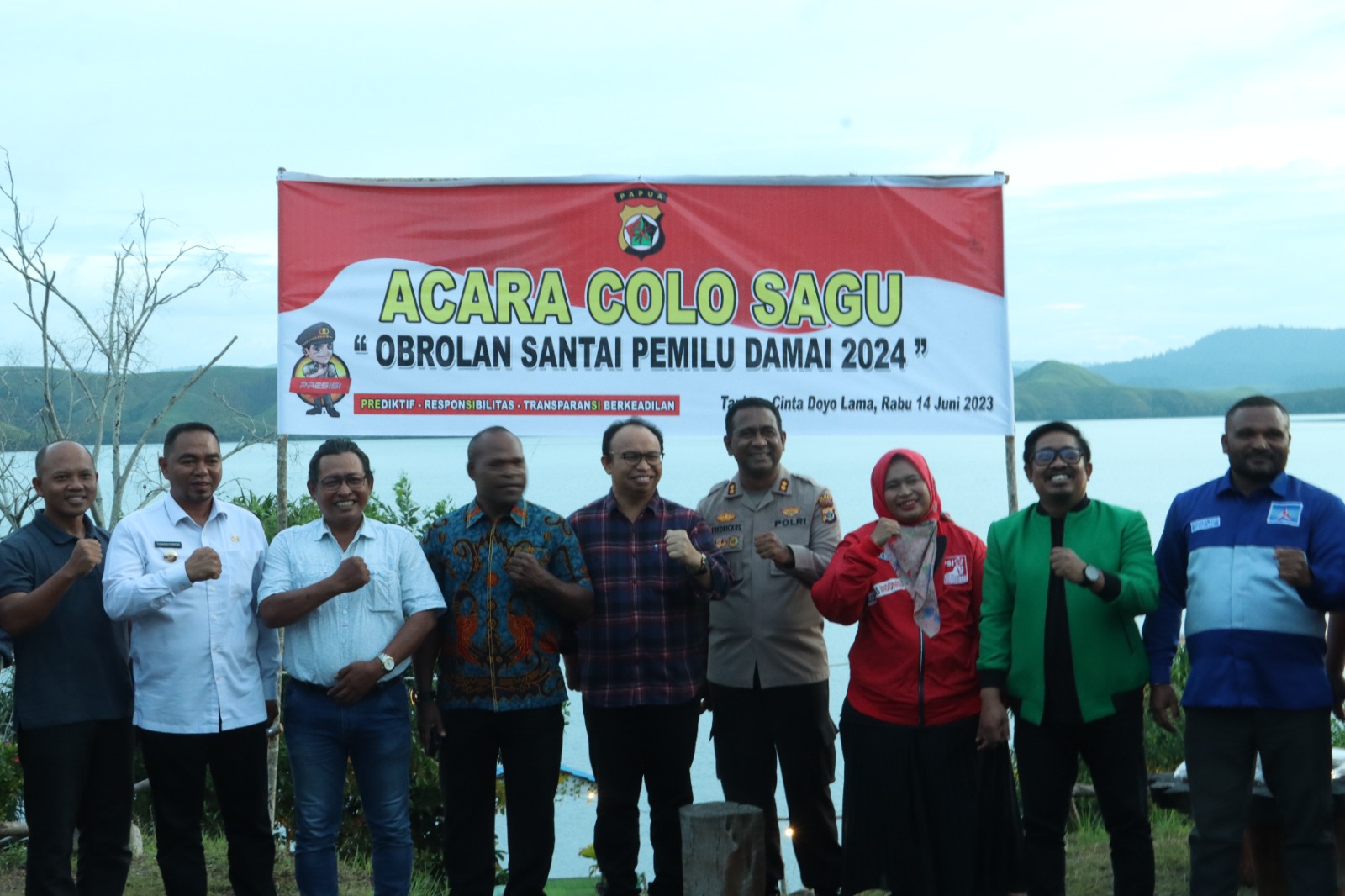 Kilaspapua, Sentani- Menjelang Pemilu 2024, Polres Jayapura menggelar obrolan santai yang dikemas dalam kegiatan Colo Sagu di Tanjung Cinta Doyo Lama Kabupaten Jayapura, Rabu, (14/6/2023).