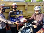 Kilaspapua, Sentani- Polisi lalu lintas Polres Jayapura membagikan sekitar 300 buah takjil kepada warga yang mengemudikan sepeda motornya dijalan raya, tepatnya lampu