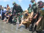 Kilaspapua, Yapen- Ratusan anak penyu yang dikembangbiak oleh kelompok peduli lingkungan Mindwwani Coba dilepas Bupati Kabupaten Kepulauan Yapen, Tonny Tesar di dua