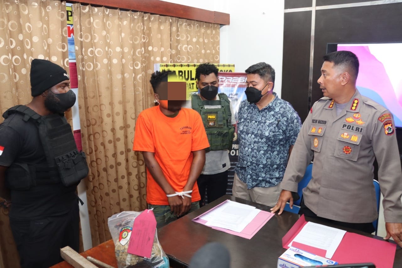 Kapolresta Jayapura Kota Kombes Pol. Dr. Victor D. Mackbon, S.H., S.IK., M.H., M.Si didampingi Kasat Reskrim AKP Handry M. Bawiling, S.Sos., M.M saat menggelar Press Conference mengatakan, Terungkap kasus tersebut setelah pelakunya berhasi ditangkap.