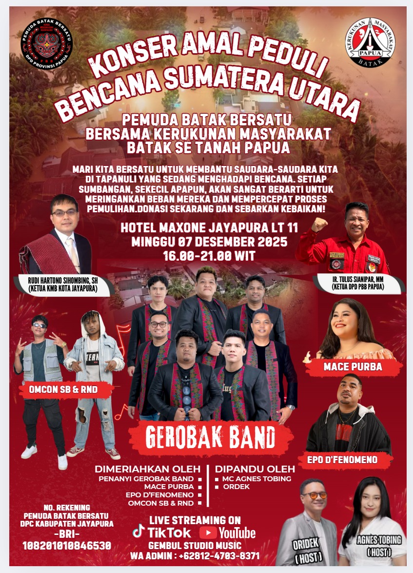 Pemuda Bersama Kerukunan Masyarakat Batak Se- Tanah Papua Gelar Konser Amal Peduli Bencana Sumatera Utara