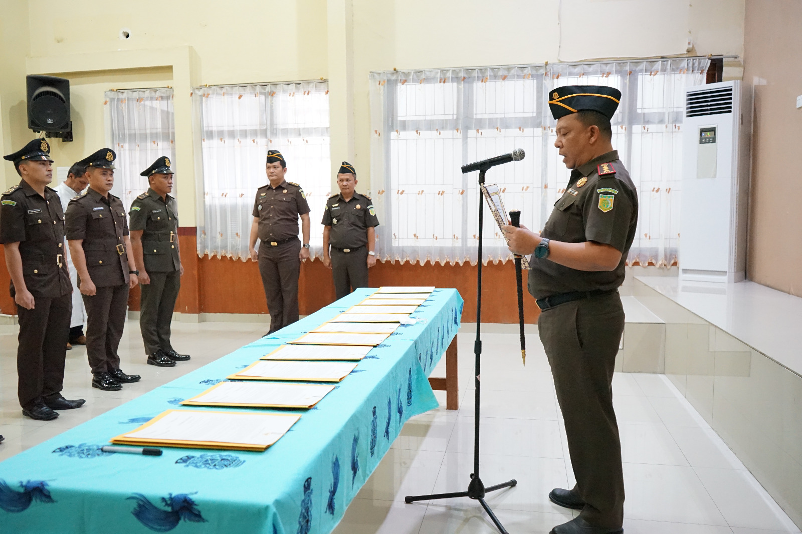 Kajari Jayapura saat melantik 12 CPNS menjadi PNS dilingkungan Kejari Jayapura diaula Kejari Jayapura.