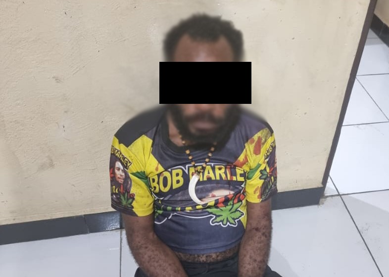 ET alias LD alias Altau saat ditangkap Satgas Damai Cartenz dan kini diamankan di Polres Nabire.(Foto. Humas Damai Cartenz)