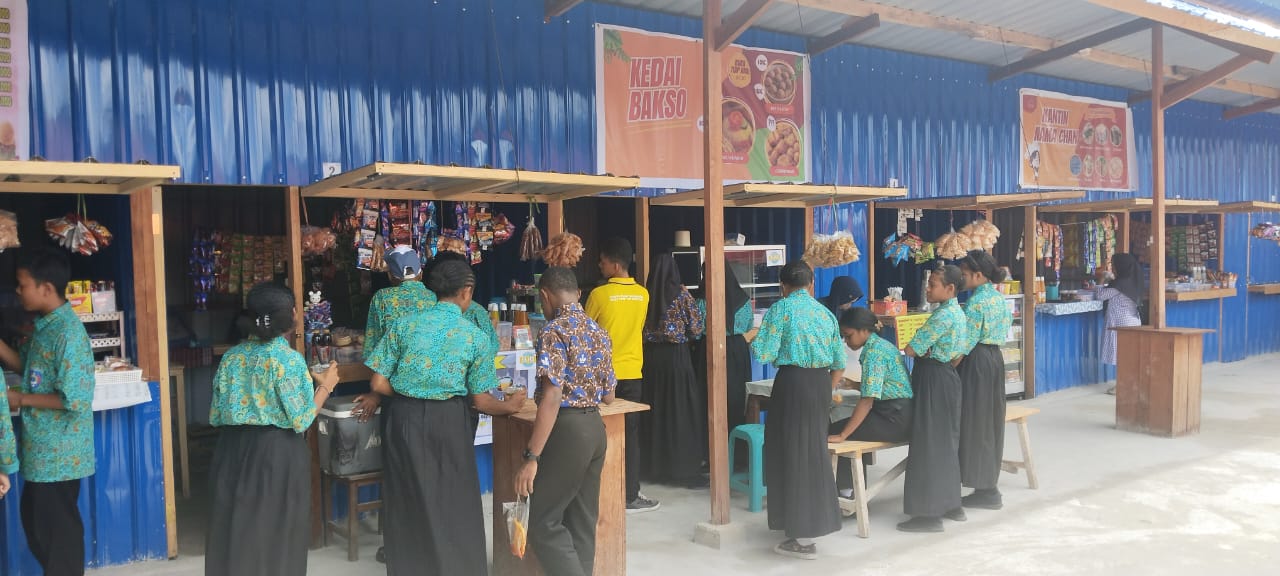 Ketika siswa dan siswi SMKS TIK Sentani membeli makanan dan minuman di kantin sehat usai diresmikan.