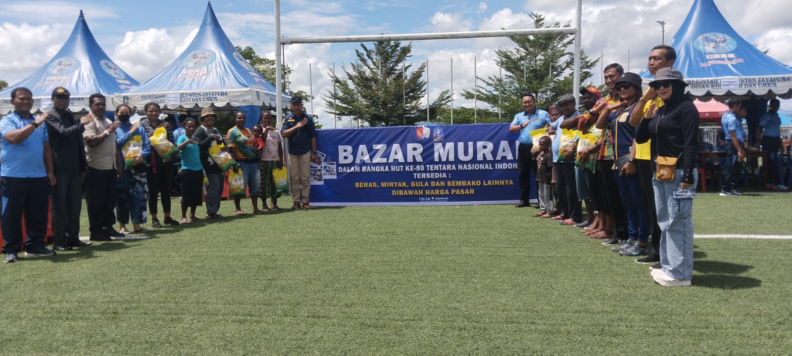 Danlanud mengungkapkan, selain itu ada juga bazar murah untuk masyarakat mengatasi inflasi kemudian memberikan sembako berupa beras 5 Kg kepada 900 warga Hinekombe dan Dobonsolo.