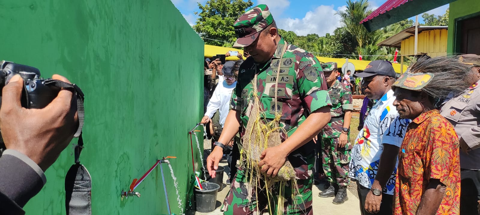 “ Kegiatan fisik yakni, membangun gereja, rumah pastori, bangun air bersih dan pustu. Khusus untuk program air bersih merupakan program unggulan dari Kasad yang dibangun dibeberapa titik selain disini. Total yang dibangun ada 6 salah satunya disini dengan menggunakan system pipanisasi ,” katanya.