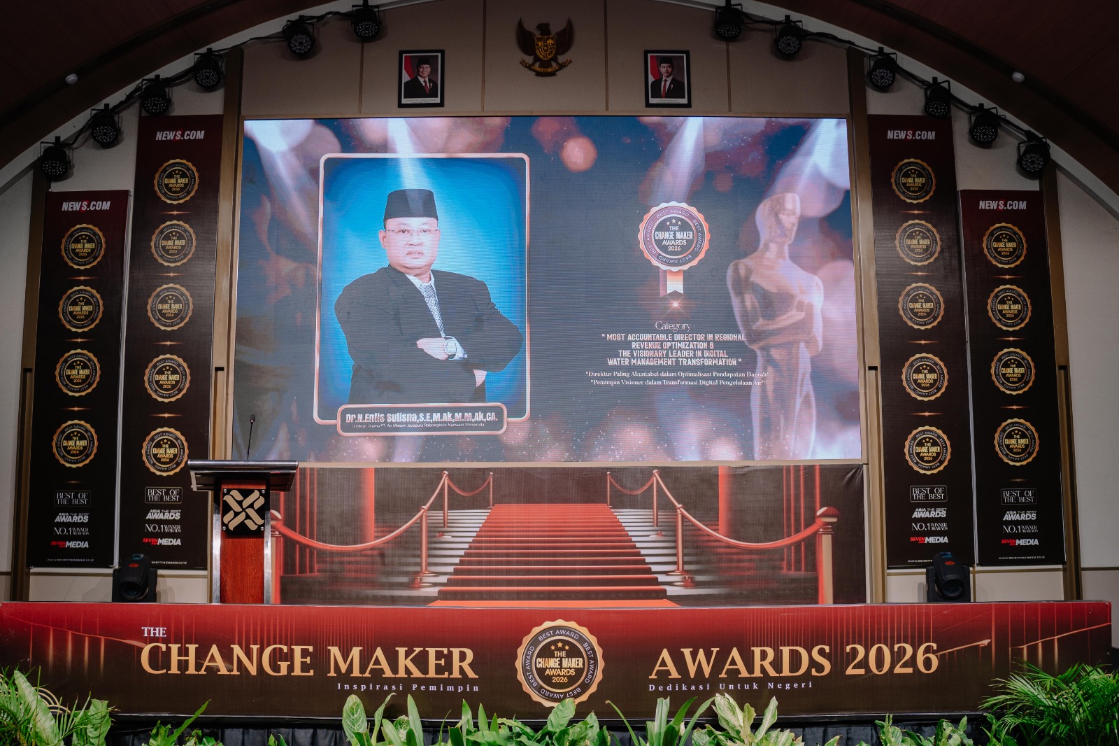 Direktur Utama PT. Air Minum Jayapura Robongholo Nanwani (Perseroda), Dr. H. Entis Sutisna, S.E., M.Ak., M.M., Ak., CA., mengukuhkan posisinya sebagai salah satu pemimpin BUMD terbaik di level regional. Dimana, setelah sukses memborong dua penghargaan bergengsi dalam ajang “The Change Maker Awards 2026” yang diselenggarakan oleh Seven Media Asia di Hotel Platinum Jimbaran Beach, Bali, Jumat (17/4/2026).