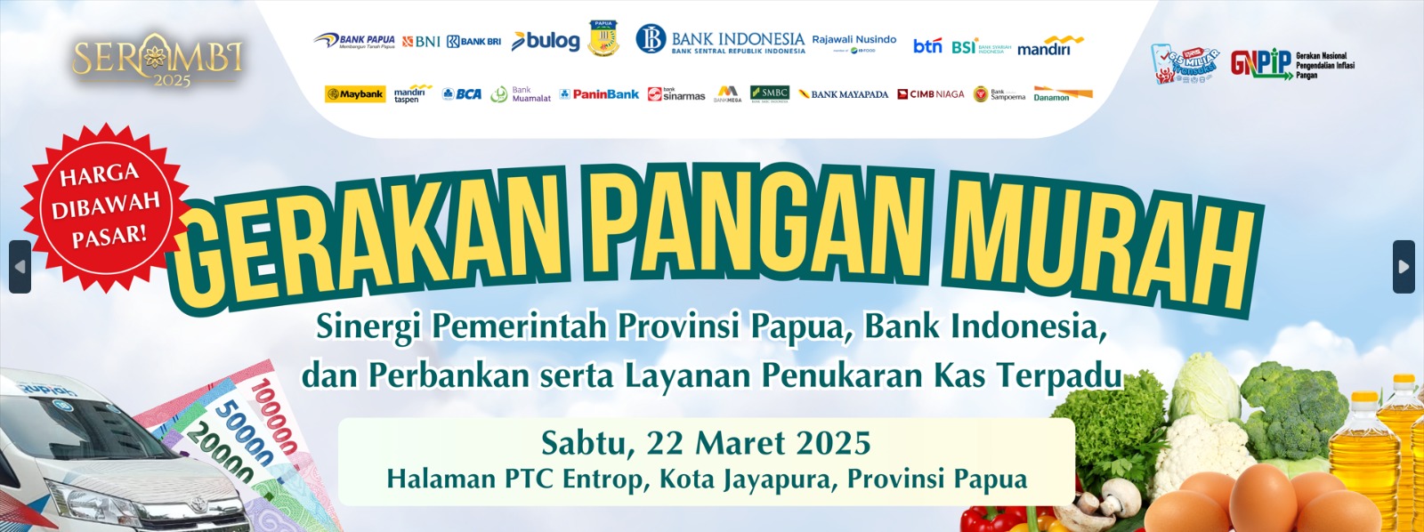 Bank Indonesia berkomitmen untuk terus bersinergi dengan pemerintah daerah dan sektor perbankan guna mendukung stabilitas harga serta ketahanan pangan di Papua. Gerakan Pangan Murah ini diharapkan dapat memberikan manfaat nyata bagi masyarakat, khususnya dalam menyambut hari raya dengan ketersediaan pangan yang cukup dan harga yang terjangkau ,” tutupnya.