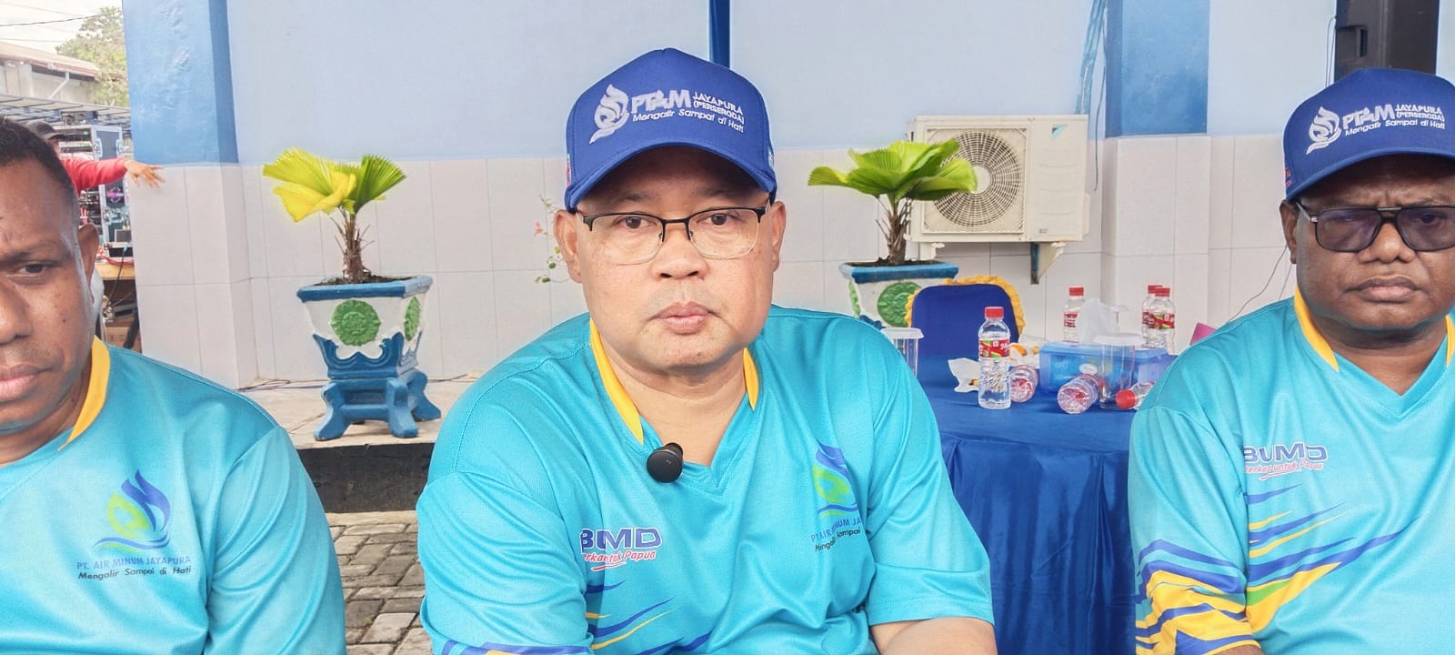 Direktur utama PT. Air Minum Jayapura, Entis Sutisna didampingi Direktur umum, Hendrik Ondi didampingi direktur Teknik, Yan Pieter Nasadit saat menjelaskan program prioritas ditahun 2026.