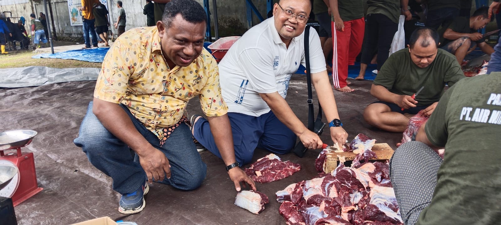 Direktur PT. Air Minum Jayapura Robongholo Nanwani (Perseroda), Dr. H. Entis Sutisna, SE, MM, CGRM kepada wartawan setelah 7 hewan kurban disembelih lalu didistribusikan kepada seluruh pegawai dan juga masyarakat disekitar Entrop termasuk kepada warga yang meminta secara khusus karena membutuhkan pembagian hewan kurban tersebut ,” katanya.