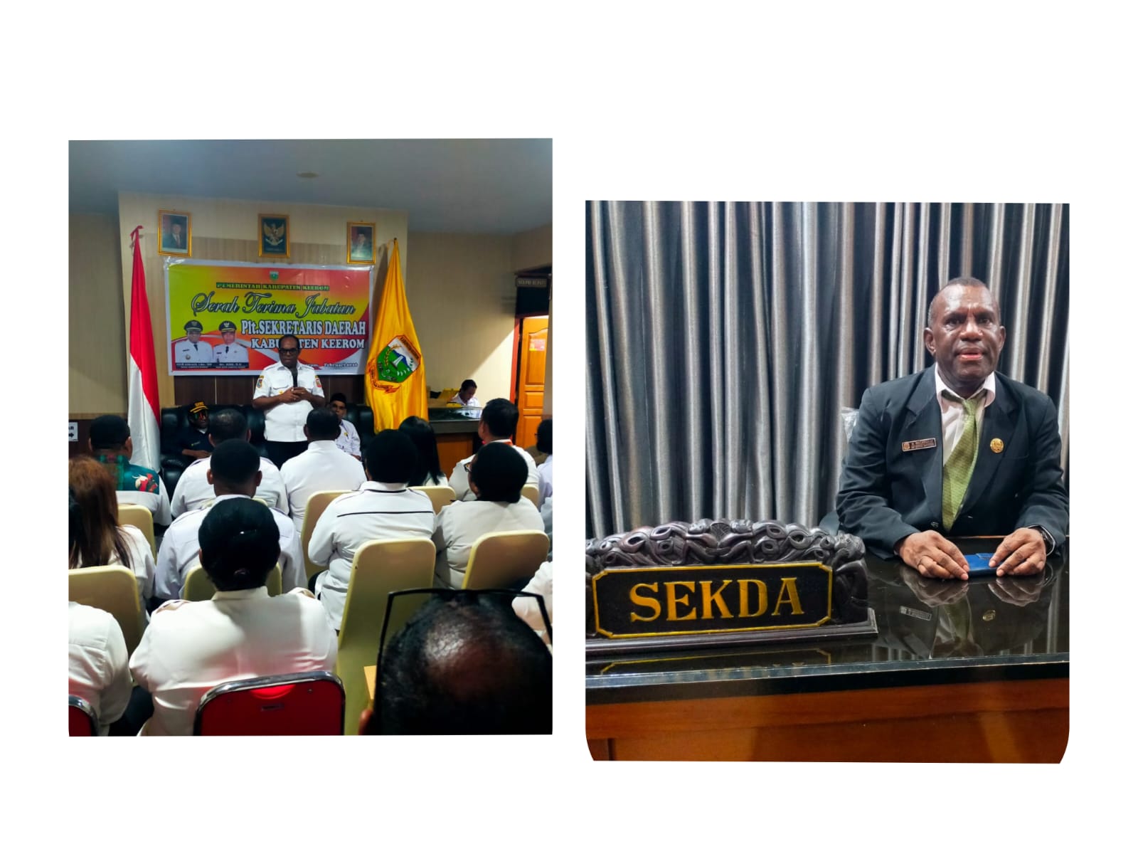 Ini Bupati sampaikan dalam acara Sertijab Plt Sekda Keerom dari pejabat sebelumnya Drs. Stenly Moningka, MMPd kepada Plt Sekda yang baru Noak Wassanggai, S.Sos.