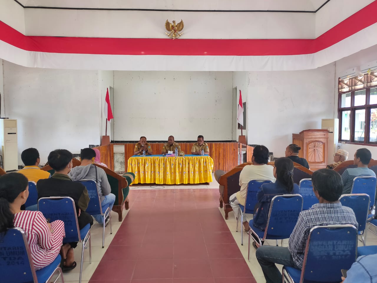 Kilaspapua, Waropen – Bupati Waropen, Yermias Bisai, SH mengumpulkan para pengusaha Toko, Kios dan warung sepanjang Waren – Urfas, SP dan Uri guna memastikan persiapan dan kesiapan jelang pelaksanaan Youth Camp dan Sidang Sinode GKI di Tanah Papua ke-XVIII, yang akan berlangsung di Warung, Senin (20/6/2022).