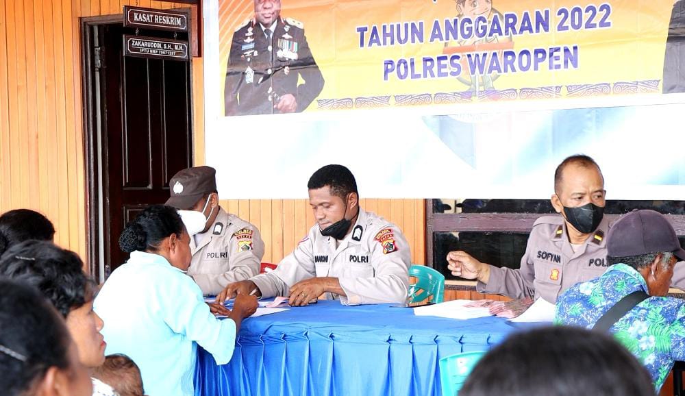 Kilaspapua, Waropen- Sebanyak 1.222 masyarakat kabupaten Waropen telah menerima Bantuan Tunai Pedagang Kaki Lima, Warung Dan Nelayan (BTPKLWN) yang disalurkan melalui Polres Waropen.