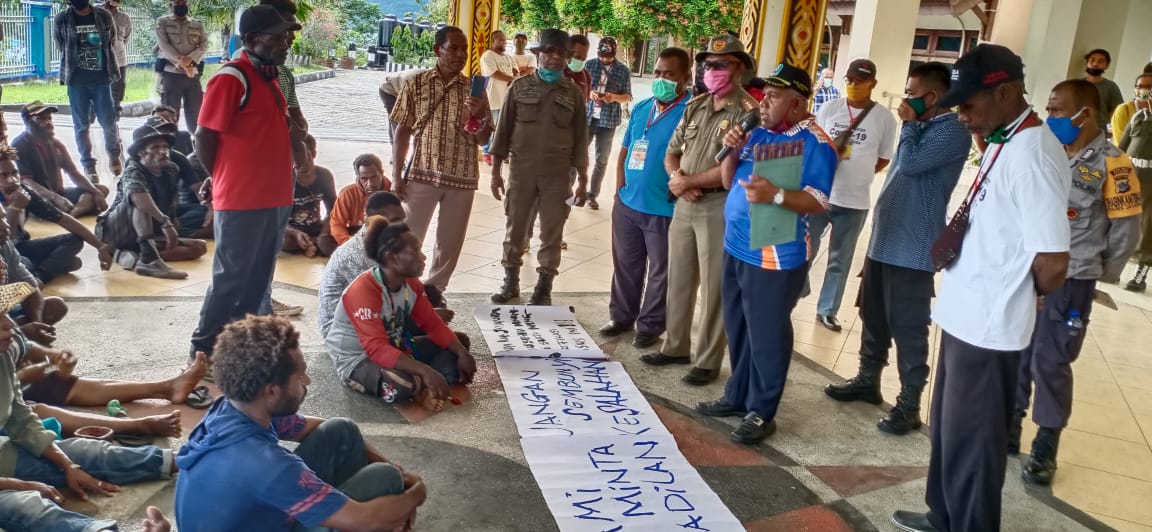 Kilaspapua, Sentani- Puluhan keluarga almarhum Mina Mince Msen Lambe (20) mendatangi Kantor Bupati Jayapura menuntun agar Pemerintah menguburkan Alm secara layak mengingat kuburannya saat ini, dinilai tidak manusiawi.