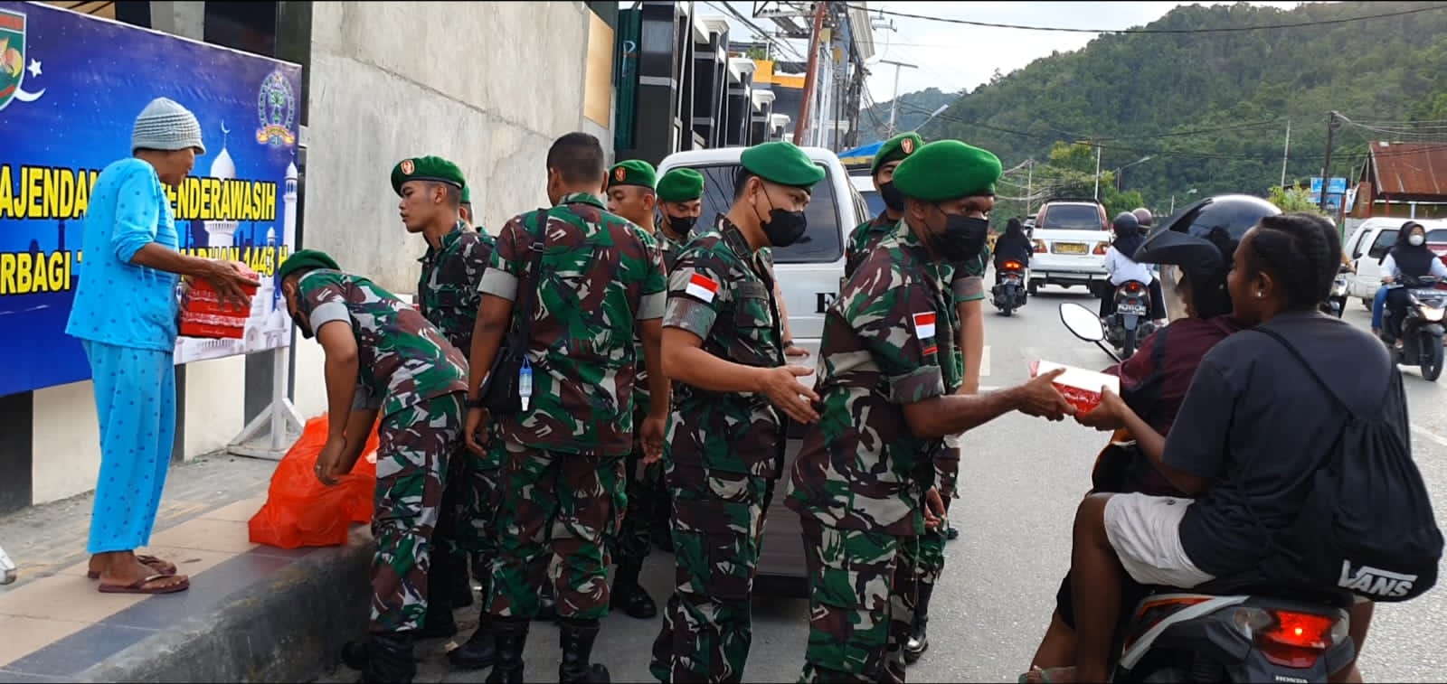 Kesempatan ini tidak disia-siakan oleh Ajendam XVII/Cenderawasih untuk menebar kebaikan dengan membagikan Takjil selama bulan Ramadhan untuk masyarakat yang sedang beraktivitas maupun yang berada dalam perjalanan.