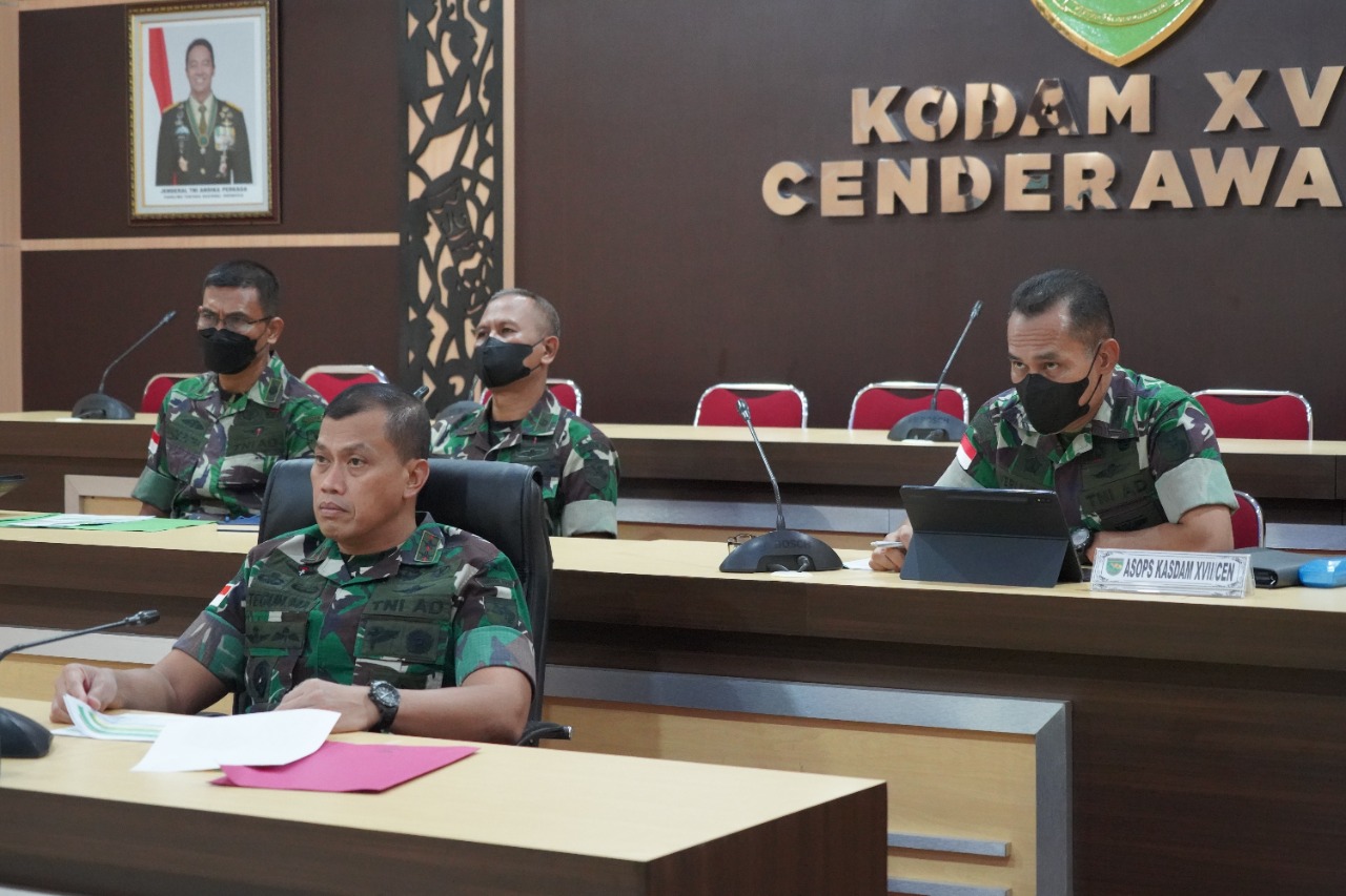 Dalam pelaksanaan vicon tersebut, Pangdam XVII/Cenderawasih didampingi Asops Kasdam XVII/Cenderawasih, Kakesdam XVII/Cenderawasih, dan Karumkitdam XVII/Cenderawasih.