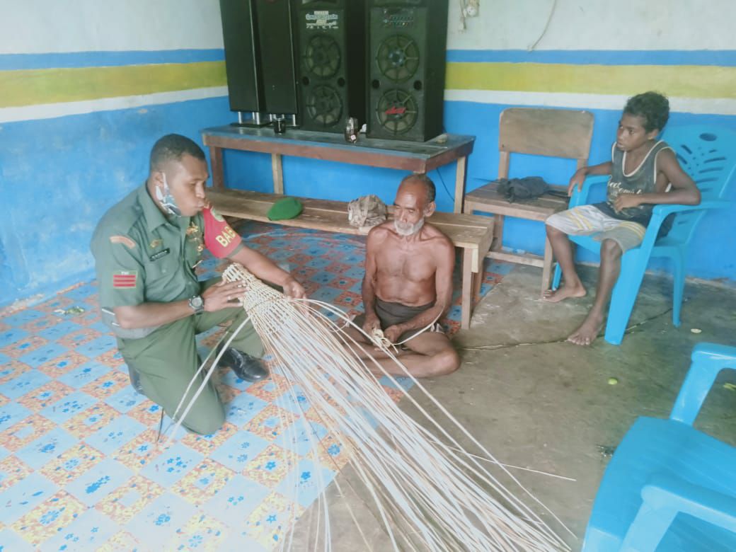 Kilaspapua, Jayapura- Memelopori usaha-usaha untuk mengatasi kesulitan rakyat di sekelilingnya, telah menjadi inspirasi Babinsa Koramil 1708-03/Biak Barat, Praka Elisa dalam membantu pengrajin membuat perangkap ikan di Kampung Yomdori, Distrik Biak Barat, Kabupaten, Biak Numfor, Jum’at (6/5/2022).