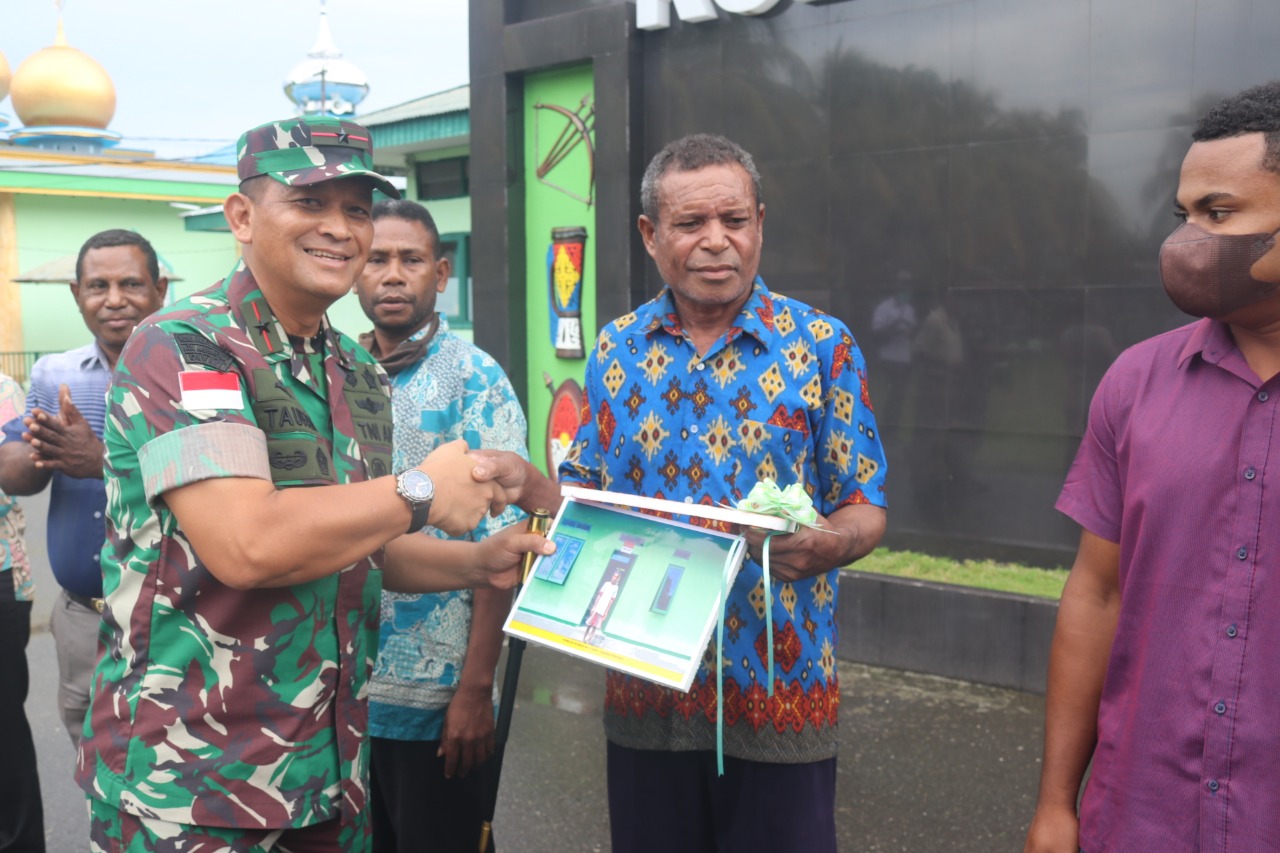 Danrem 173 PVB Brigjen TNI Taufan Gestoro ketika menyerahkan rumah secara simbolis pada penutupan TMMD di Kampung Poom.(Foto. Kodim 1709/Yawa)