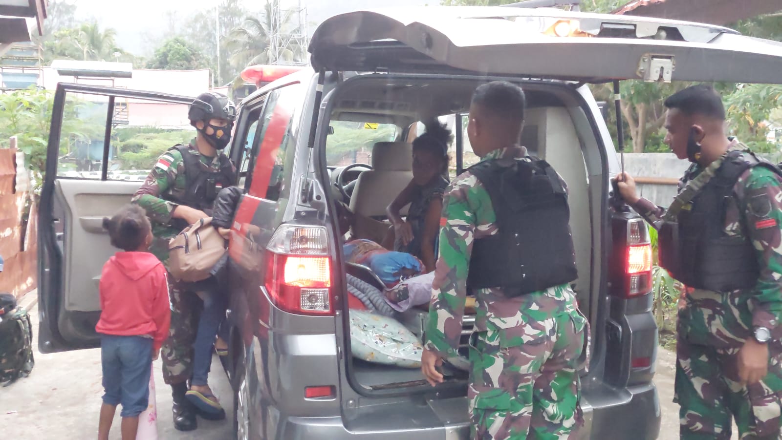 Kemudian dengan cepat, turut membantu proses evakuasi warga yang mau melahirkan yaitu Ibu Novela (26) Istri dari Bapak Alex (30) dari Kampung Skouw menuju RS Dok II Jayapura.