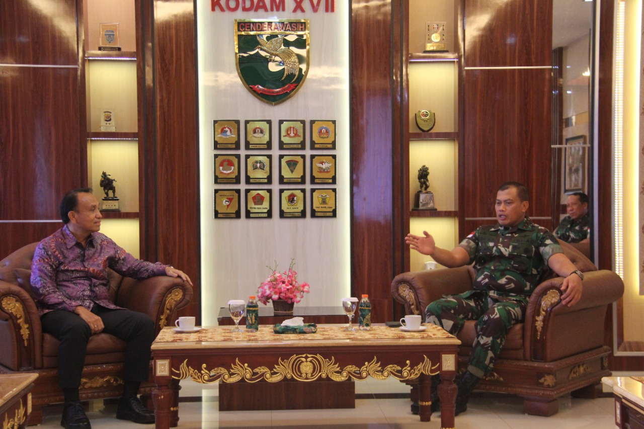 Di tempat yang sama, Pangdam XVII/Cenderawasih Mayjen TNI Teguh Muji Angkasa, S.E., M.M menyampaikan terima kasih atas kunjungan Kepala Perwakilan BPK Provinsi Papua. Terlebih lagi selama ini pihak BPK RI di wilayah Provinsi Papua telah membantu Kodam XVII/Cenderawasih.