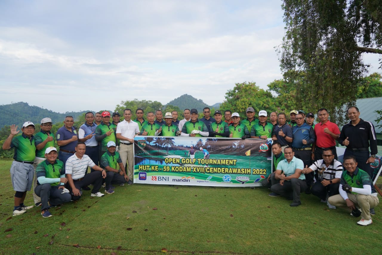 “Turnamen Golf ini merupakan rangkaian peringatan HUT Ke-59 Kodam XVII/Cemderawasih. Puji syukur tunamen ini berlangsung meriah dan sukses,” jelas Kapendam XVII/Cenderawasih.