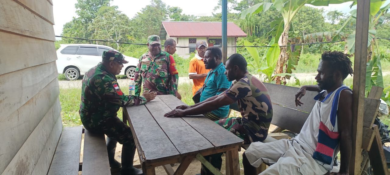 Kilaspapua, Jayapura- Guna tingkatkan kemanunggalan TNI-Rakyat, anggota Babinsa Koramil 1701-06/Senggi melakukan komunikasi sosial (Komsos) bersama warga Kampung Som SP2 Distrik Senggi Kabupaten Keerom, Rabu (22/06/2022).