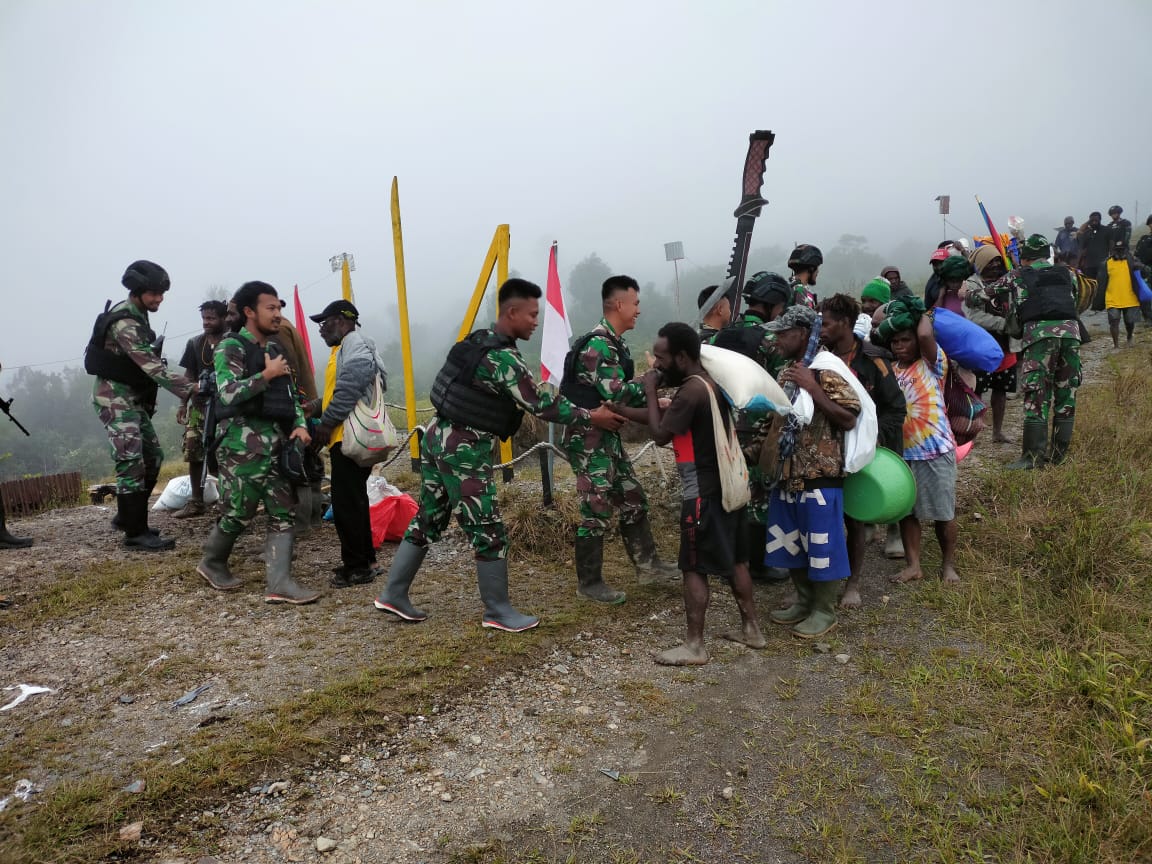 Masyarakat Yigi saat kembali kerumah masing-masing dan itu tak lepas dari pembinaan territorial dan Komsos secara intens.(Foto. Penrem 172/PWY)