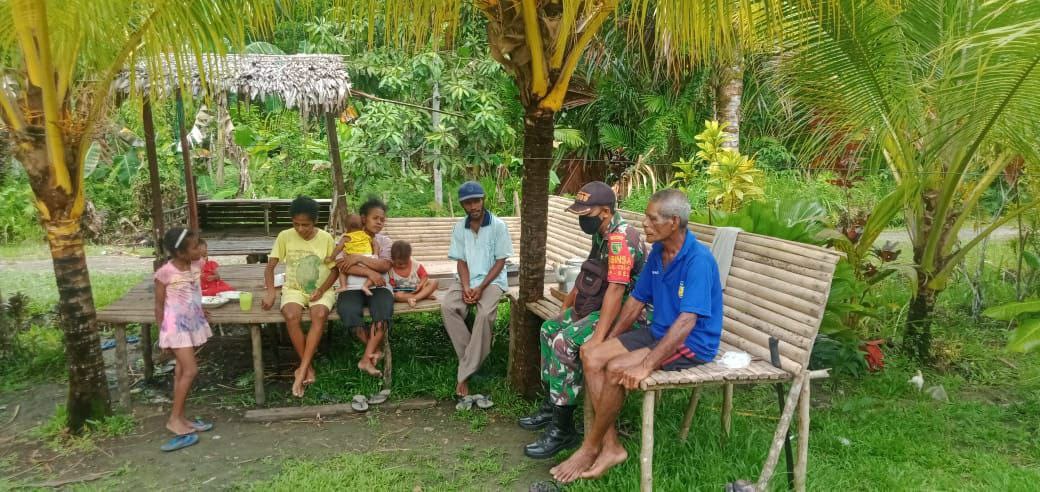 Kilaspapua, Jayapura- Sertu I Kadek Dana S. Babinsa Koramil 1709-01/Yapen Selatan rutin menyapa dengan menyambangi rumah-rumah warga di Kampung Roipi, Distrik Angkaisera, Kabupaten Kepulauan Yapen, Sabtu (16/04/2022)