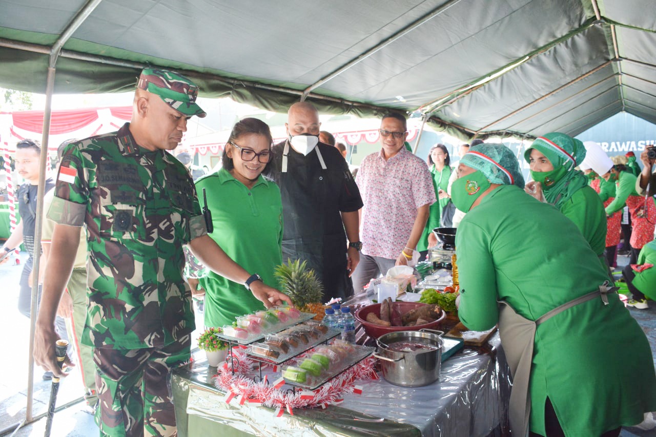 Kilaspapua, Jayapura – Dalam rangka memeriahkan HUT ke-77 Kemerdekaan Republik Indonesia, Korem 172/PWY melalui Persit Kartika Chandra Kirana (KCK) Koorcab Rem 172 PD XVII/Cenderawasih melaksanakan berbagai lomba. Salah satu lomba yang diadakan adalah lomba memasak dengan menggunakan bahan pangan lokal seperti sagu dan singkong.