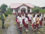 Kilaspapua, Jayapura- Menempa jiwa dan disiplin sejak dini, Serda Silveter Noo memberikan pelatihan Peraturan Baris Berbaris (PBB) kepada pelajar Sekolah Dasar YPK