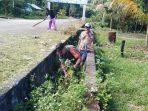 Bersihkan rumput-rumput liar dibahu jalan, Babinsa ajak masyarakat peduli lingkungan
