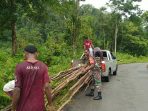 Kilaspapua, Jayapura- Babinsa Posramil 1708-02/BU-Warsa Serda Sukri Goma dan warga setempat saling bergotong-royong mengambil material kayu buah, untuk digunakan merehab plafon rumah