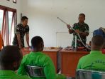 Kilaspapua, Jayapura- Perwira Seksi Teritorial (Pasi Ter) Kodim 1711/BVD Kapten Inf Warsito memberikan materi pembuatan alat pertanian yakni inovasi tabur dan kocor