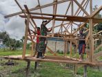 Jalin keakraban, Babinsa bantu warga bangun rumah panggung