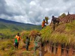 Semangat pengabdian didaerah penugasan pedalaman Papua, Satgas MR 412 Kostrad ikut bantu bangun honai