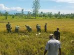 Panen padi petani di Kampung Mulia Kencana, Bukti pendampingan Danramil Kuala Kencana bersama Babinsa