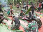 Ungkapan syukur pembangunan Tower komunikasi, Satgas Yonif 123/RW bersama warga gelar tradisi bakar batu
