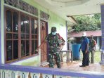 Kilaspapua, Jayapura- Untuk mencegah terkena penyakit malaria, Babinsa dari Koramil 1710-07/Mapurujaya yang dipimpin oleh Pelda Chairul membantu tenaga kesehatan,(Nakes) menyemprot pestisida “Ficam”