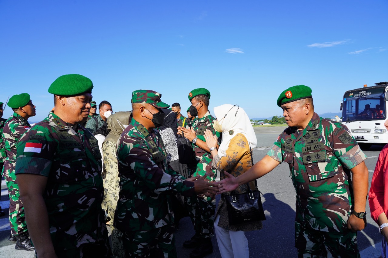 Kilaspapua, Jayapura- Pangdam XVII/Cenderawasih Mayjen TNI Teguh Muji Angkasa, S.E., M.M didampingi Ny. Erni Teguh Muji Angkasa selaku Ketua Persit KCK Daerah XVII/Cenderawasih bersama Pejabat Kodam XVII/Cenderawasih menyambut kedatangan, Mayjen TNI Muhammad Saleh Mustafa didampingi istri di Bandara Sentani, Jayapura, Senin (22/08/2022).