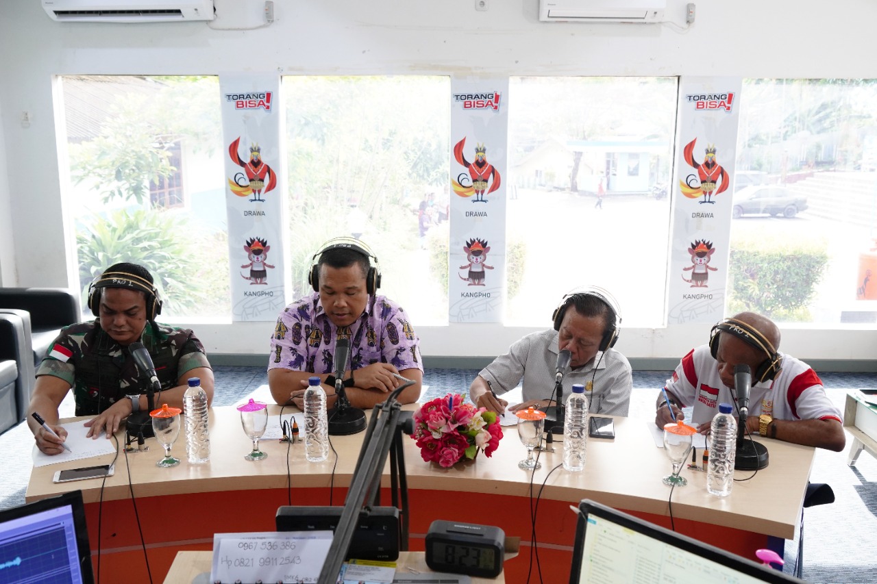 Kilaspapua, Jayapura- Kapendam XVII/Cenderawasih Letkol Kav Herman Taryaman, S.I.P., M.H. bersama Sekjen FORKOM Lintas Kerukunan Nusantara Ir. H. Junaedi Rahim, Wakil Ketua Majelis Pertimbangan Paguyuban Yonas A. Nussy dan Direktur Intelkam Polda Papua Kombes Pol. Dr. Tagor Hutapea, S.I.K., M.Si., hari ini menjadi Narasumber tunggal dalam acara Dialog Interaktif bekerjasama dengan Radio RRI Pro I Jayapura, dengan tema “Peranan Paguyuban Dalam Mendorong Kedamaian di Papua”, bertempat di Studio Radio RRI Jayapura Jl. Tasangkapura No.23, Entrop, Jayapura Selatan, Kota Jayapura, Papua. Jumat (22/07/2022).