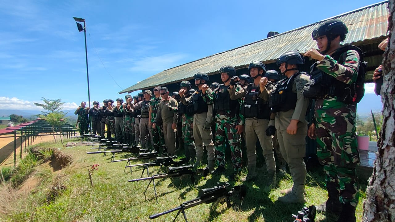 Kilaspapua, Jayapura- Jajaran TNI-Polri yang terdiri dari personel Batalyon Infanteri 756/WMS dan Resimen II Pelopor Brimob menggelar latihan tembak bersama di Lapangan Tembak Mujitahidin Yonif 756/WMS, Sabtu (13/8/2022).